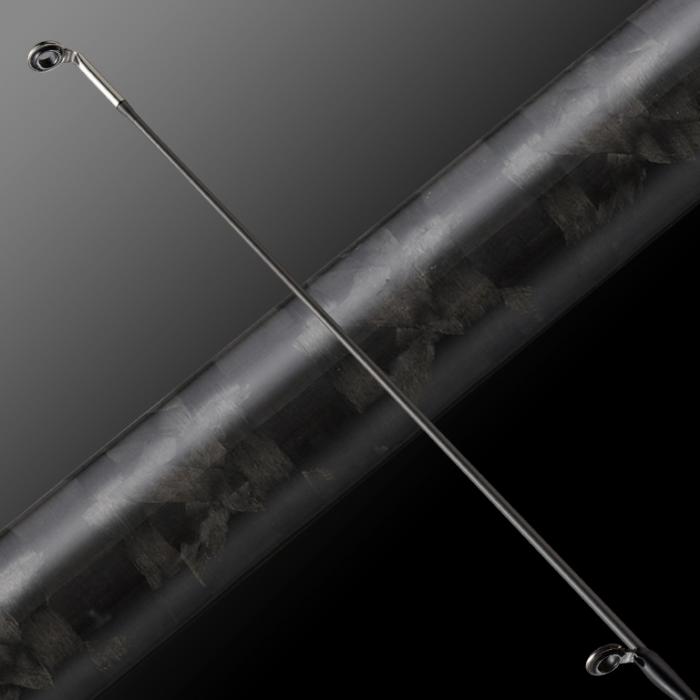 ベリーは30トンカーボンをメインに構成し、繊細なソリッドティップと強靭なセンターからバットをスムーズに繋ぐ最適な張りを持たせ、センター〜バットはさらに弾性率の高い40トンカーボンをやや厚く巻き、さらにバット径を大胆に太くすることで、ディープレンジ・ロングディスタンスゾーン攻略に必要な張りと強靭さを備えさせました。