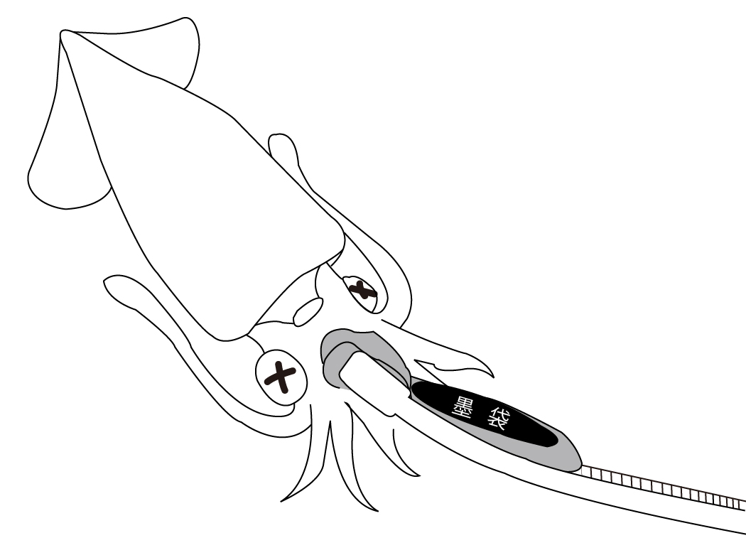 ●イカの内臓をホールドしやすいよう接地面積を広げ、触腕をイメージした幅広ノーズティップ。