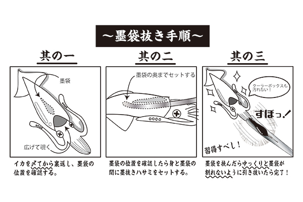 墨袋を綺麗に除去するにはコツがいるものの習得すれば釣行後の面倒なイカ墨の汚れとは無縁です。