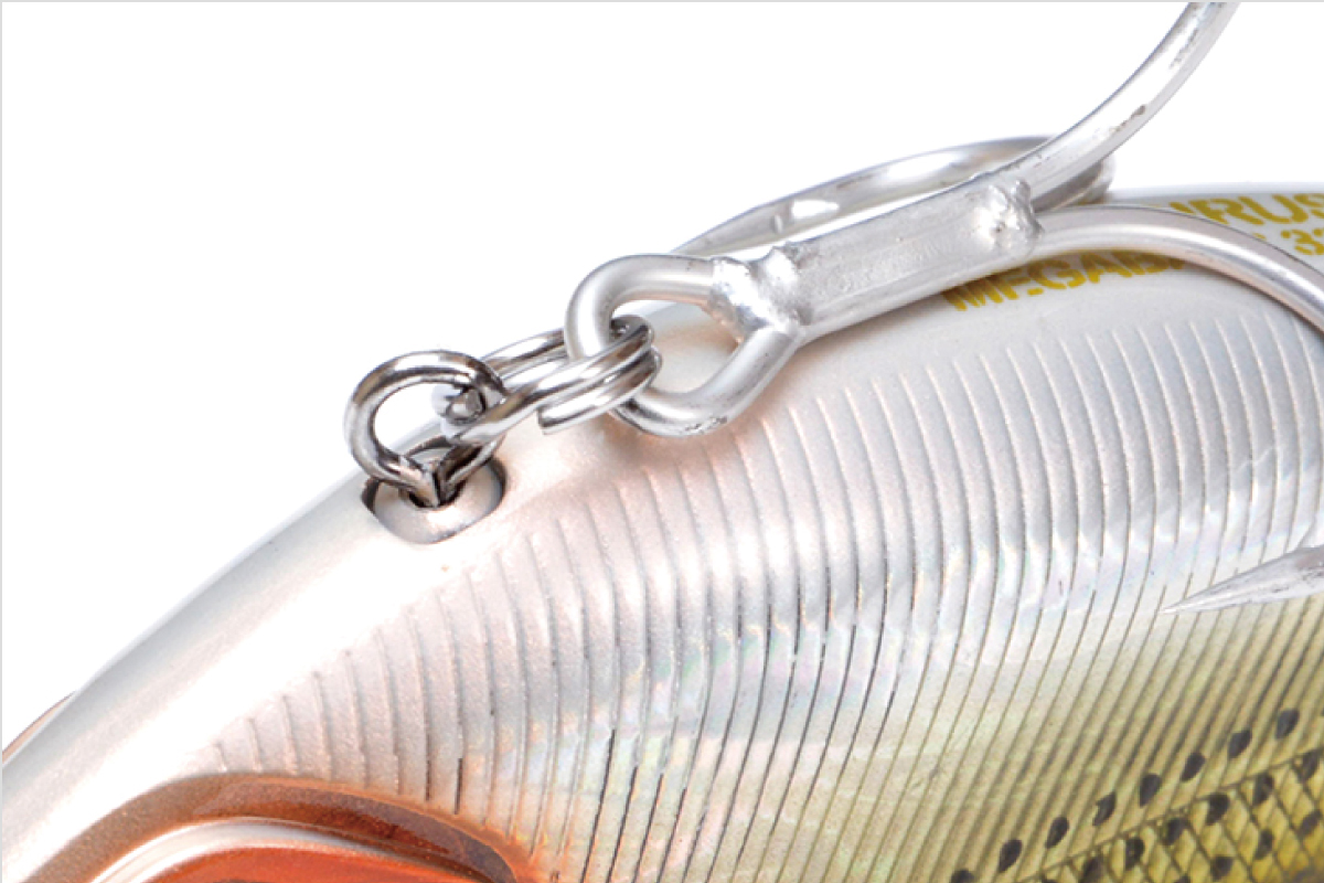 全長100mm を超える幅広ボディは、コノシロやサッパなど体高のある大型ベイトを偏食するモンスターシーバスや青物に強烈にアピール。特殊な内部構造による極薄ボディとバックフィン、専用成形バランサー搭載による低重心設計が相まって、大型ボディの常識を覆す、リトリーブに即応する俊敏なアクションレスポンスを実現。スロー域でも鋭敏なバイブレーション波動と明滅を発揮します。捕食のホットゾーンを長時間、快適にかつ的確にサーチできるセッティングです。前後のフックアイは、強靭で追従性の高いスイベルアイを搭載。モンスターの強烈なヘッドシェイクに対応し、バラシを激減させています。モンスターのビッグバイトを格段に拡大すべくハダラバイブは誕生。
