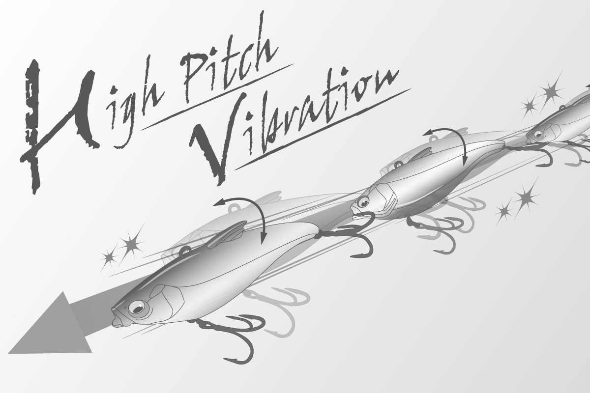 ハダラバイブは鋭いハイピッチバイブによって閃光明滅を倍加させ、イレギュラーなダート軌道によって積極的にフィーディングをもたらすスペシャルベイトです。