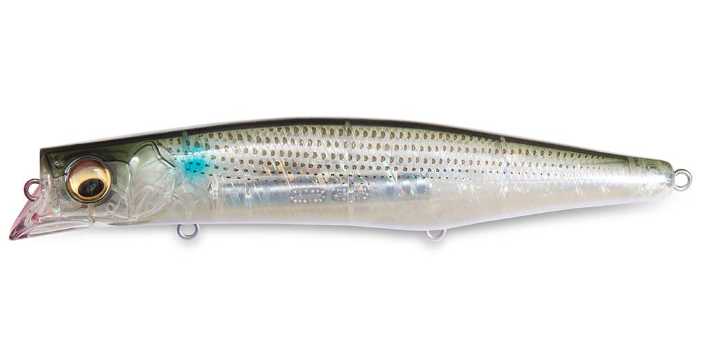 シャロー域や表層域において、ボラや落ちアユ、コノシロ等の大型ベイトが捕食される状況でボリューム感のあるハイアピールボディが絶大な効果を発揮。独自形態のリップスポイラーは、捕食レンジにシビアなモンスターを果敢に反応させるべく、このサイズで最もアジャスト率の高い最大0.8mの絶妙なフィーディングレンジを捉え、オリジナルのカゲロウよりも一段下層の攻略を可能としています。また、強化したダイビング・スタビリティによって、荒れた波風や潮流による水面からの飛び出しを完全に抑え、外洋の磯場やサーフなどラフな環境にも対応。カゲロウ MD 156Fに搭載した重心瞬間移動システムLBOII(PAT.)は、カゲロウMD 125Fと比較してウエイト本体重量を2倍以上も増加。圧倒的質量を持つベアリング内蔵ウエイトがキャスト時に強力な推進ベクトルを発生させ、従来の同サイズルアーの平均的飛距離を格段に凌駕する、超・長距離飛行を実現。リールハンドルに手を掛けた瞬間に、即座にロールアクションが立ち上がる稀代のレスポンシビリティが、圧倒的に攻撃領域を拡大。竿抜けエリアのモンスターに迫ります。