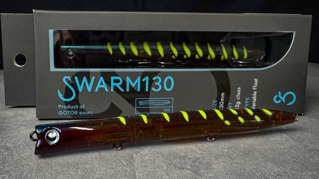 スウォーム130は川バチ攻略に特化したモデル。バチ抜けを生態と釣法の両面から考え「バチ抜けのど真ん中を突く」コンセプトとしてのスウォームを踏襲し前作のスウォーム80Sとは異なる形状と仕様・スイムに仕上げている。