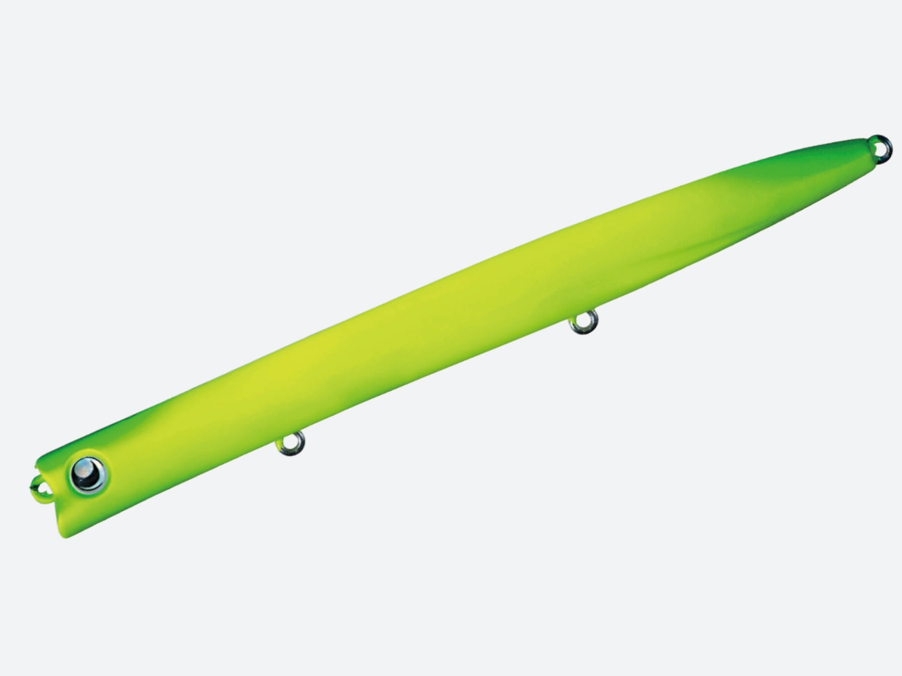 いかなる塩濃度であっても、アップ・ダウン、デッドスロー・早巻きであってもレンジ20cm前後から外れないように顔周りの角度を設計。これにより、ダウンクロスに立ち位置が限られるエリアにおいてもレンジをキープする事が可能になり攻略の幅を広げる。さらに、サヨリパターンのようなストップと早巻きを繰り返す場合でも使用可能。