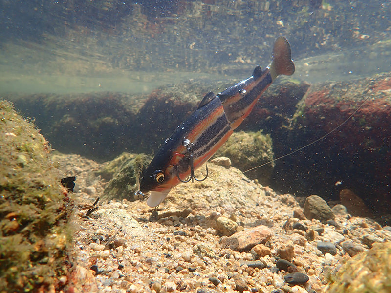 サスペンド仕様にした後、立ち木中層の枝に置いてロングステイからのワンジャークや、シンキング仕様にしてからのボトムで砂煙を上げるような連続ボトムジャーキングも可能になりました。