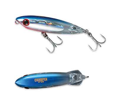 本体最後部にタングステンウェイトを搭載し、抜群の飛距離をほこる「チヌペン」は、小刻みなトゥイッチを加えた際にテールを中心として左右へ頭を振り、強い水押しを発生させ引き波を残してアピール。